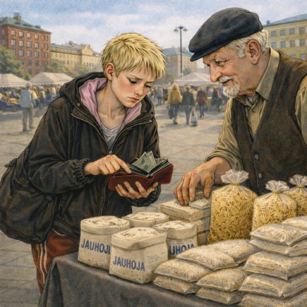 Der Volvo-Bus ruckelt über finnische Schlaglöcher, und ich sitze hinten wie auf glühenden Kohlen. Fischer kritzelt seelenruhig in meinem Matheblock, ausgerechnet in dem Block, in dem mein ganzes Leben zwischen den Seiten steckt. Ich lächle Edmilla-mäßig, außen harmlos, innen Herzrasen. Vorne lauert Mielke schon in meinen Gedanken: „Edda…“ und ich weiß, jeder falsche Blick ist ein Risiko.