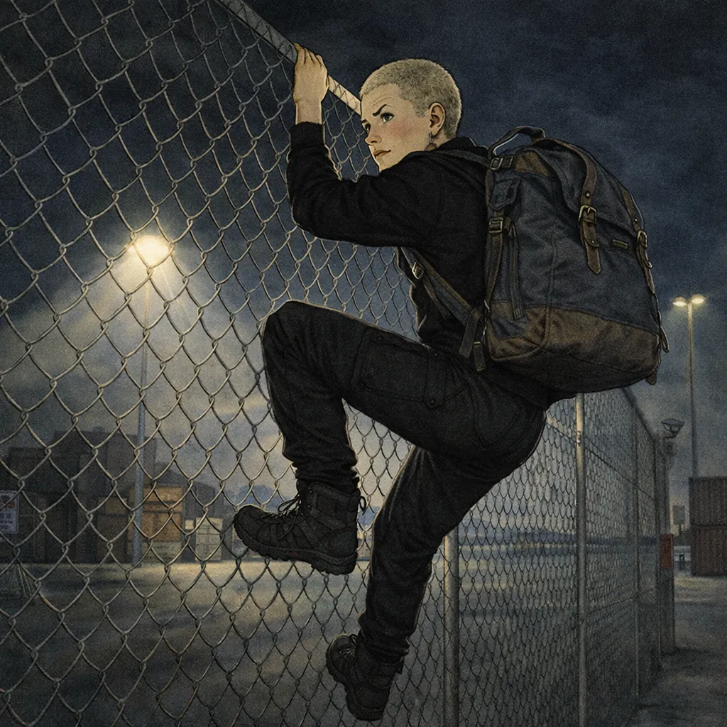 Da ist der Personalausgang. Da sind die Zäune. Da sind die Kameras, kleine Kreise, die mich anstarren, als hätten sie schon gewonnen. Und da ist dieser helle Streifen ohne Deckung, der sich anfühlt wie ein Scheinwerfer direkt auf meinem Namen.